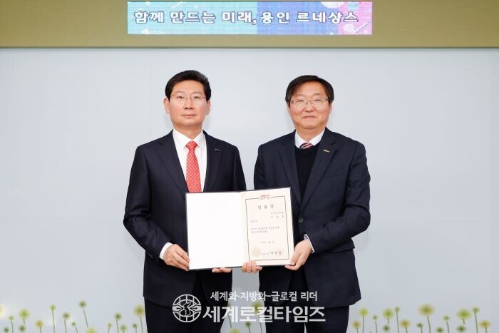 이상일 용인시장은 시장 집무실에서 류 신임 제1부시장에게 임용장을 수여했다.
