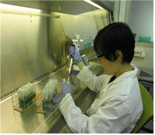▲ 경기도축산위생연구소 관계자가 성분규격 적합여부를 검사하고 있다.<사진제공=경기도청> |
