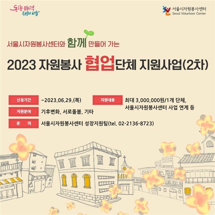 [세계로컬타임즈 이효진 기자] 서울시자원봉사센터는 지역사회의 다양한 단기 이슈에 대응하는 활동을 지원하고, 이를 통해 협업 사업을 함께할 자원봉사 단체를 29일까지 모집한다.