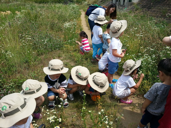 | ▲ 지난 6월 14일 성남시 탄천 수내습지에서 오렌지유치원생들이 야생화를 관찰하고 있다.<사진제공=성남시청> |