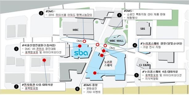 DMC클러스터의 중심도로인 DMS(Digital Media Street)에서는 행사 3일간 2016 아이서울 어워드 행복나눔장터, 소공인 특화지원센터 기업 제품 판매, 거리축제 및 체험 행사가 펼쳐지고, 누리꿈스퀘어 광장에서는 DMC입주기업의 기술 및 제품 전시가 진행된다.