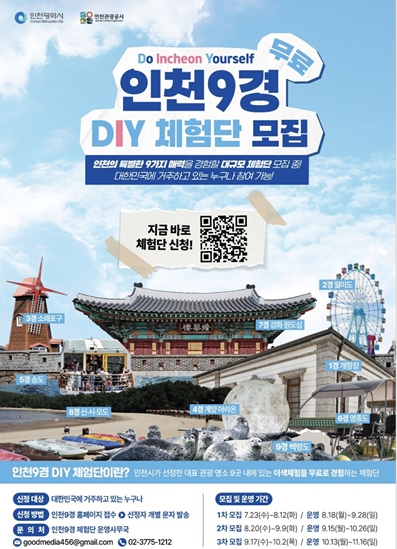 [세계로컬타임즈] 인천광역시와 인천관광공사는 인천의 대표 관광지를 나만의 방식으로 즐길 수 있는‘인천9경 DIY 체험단’을 모집한다고 밝혔다.