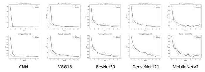 이를 위해 이미지 학습에 널리 활용되는 합성곱신경망(CNN) 기본 모델과 함께, VGG16, ResNet50, DenseNet121, MobileNetV2 등 CNN 기반 전이학습 모델을 적용해 예측 성능을 비교·분석했다.