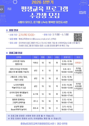 정은영 교육장은 “마을교사는 지역의 소중한 교육자원으로서 학생들이 삶과 배움을 연결해 성장할 수 있도록 돕는 중요한 역할을 맡고 있다”며 “당진창의체험학교를 통해 학교 교육과정이 지역과 더욱 긴밀히 연계되고, 학생들의 창의성과 공동체 역량이 함께 자라나길 기대한다”고 밝혔다.