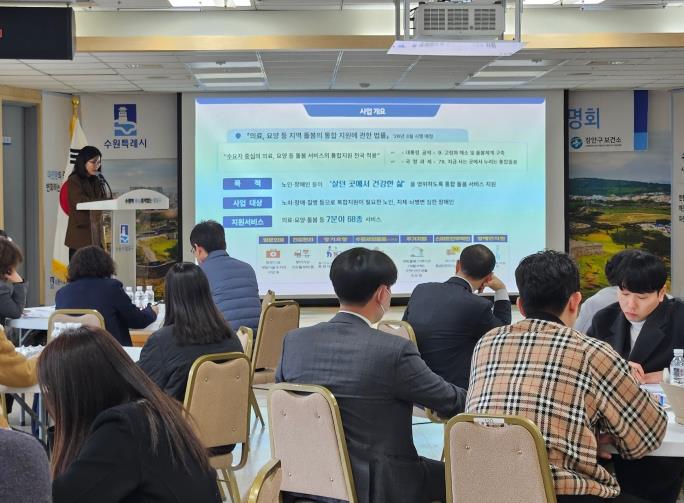 수원시는 지역사회 통합돌봄 제도 개요와 추진 배경을 설명하고, 퇴원환자 통합돌봄 연계·지원 절차를 안내했다. 또 수원시 주요 의료·돌봄 서비스 현황과 자원을 공유하고, 효과적인 민관 협력 방안을 논의했다.