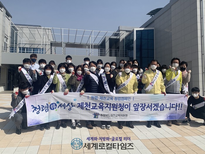[세계로컬타임즈 김병호 기자] 제천교육지원청은 지난 5일 식목일을 맞이해 조직 구성원 모두가 참여하는 청렴 ‘줍깅’ 행사 및 봄맞이 꽃심기 행사를 실시했다.
