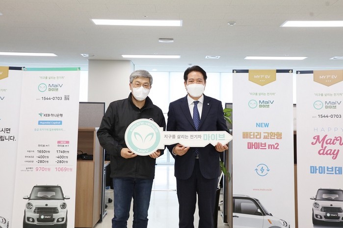 (주)마이브는 초소형 전기 차량과 이륜차를 생산해내는 업체다. 산업통상자원부가 진행한 초소형 전기차 성능평가에서 주행 거리, 배터리 효율, 냉난방 성능, 디자인 등의 분야 종합 평가 1위에 오르며, 초소형 EV기술을 선도하고 있다.