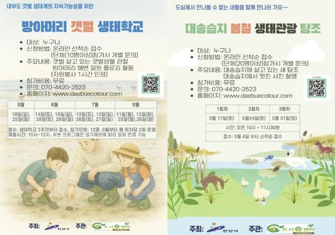 두 가지 프로그램 모두 안산시생태관광 누리집에서 온라인으로 접수하면 된다.