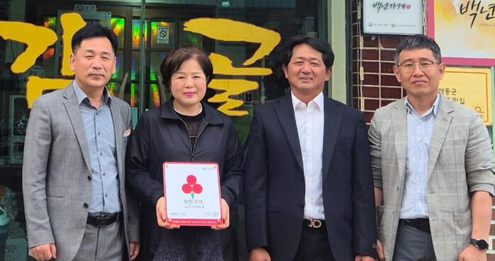 영동읍 지역사회보장협의체는 22일 감골생고기타운에 ‘착한가게’ 현판을 전달하고, 나눔 실천에 대한 감사의 마음을 전했다.