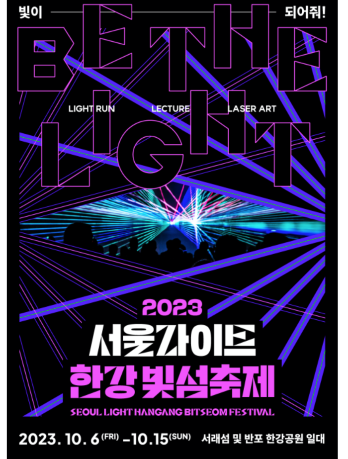 서울시는 오는 10월 6일 개막식을 시작으로 15일까지 서래섬과 반포한강공원 일대에서 제1회 ‘2023 서울라이트 한강 빛섬축제’(이하 빛섬축제)를 처음으로 선보인다. 이번 축제는 서울에서 열리는 레이저아트의 첫걸음이다.
