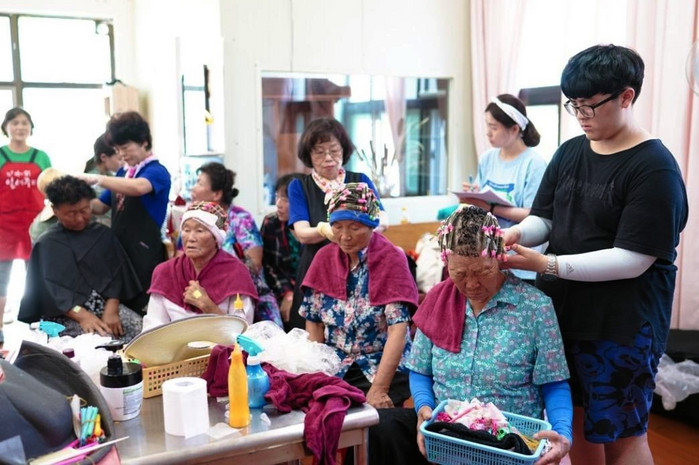 | ▲ 전남 장흥군 관산읍 마을회관에서 인천주안장로교회 청년자원봉사팀이 이·미용 봉사를 하고 있다. <사진제공=장흥군> |