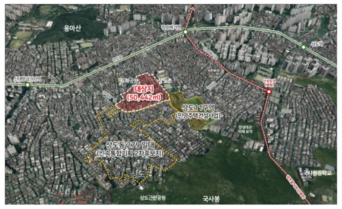 대상지 일대는 재해에 취약한 급경사지로, 2018년 9월 상도유치원 붕괴사고가 일어났던 지역이기도 하다.