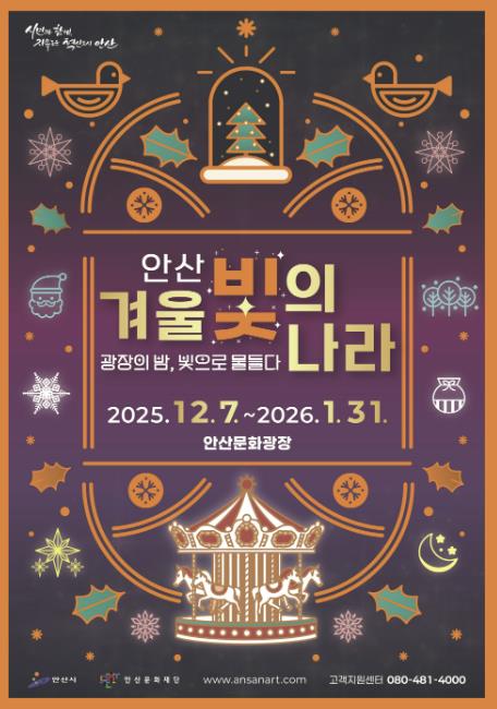 이민근 안산시장은 “이번 축제는 시민들에게 위로와 감사의 마음을 전하기 위해 마련한 것인 만큼, 빛으로 물든 광장이 안산의 겨울밤을 특별하고 따뜻하게 만들어주길 기대한다”며 “축제의 마지막까지 시민 불편이 없도록 철저히 준비하겠다”고 말했다.