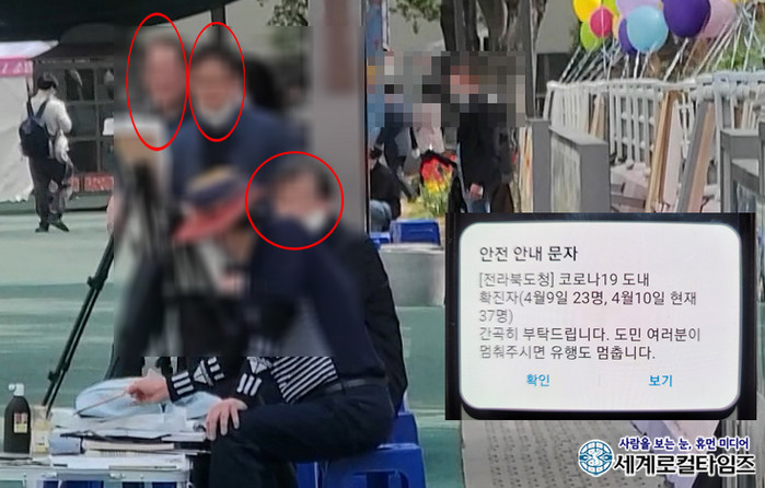 [세계로컬타임즈 글·사진 조주연 기자] 전북도 방역당국이 도민들에게 ‘멈춤’을 간곡히 당부하고 있는 가운데 김제시가 문화행사를 펼쳐 전북도와 엇박자를 보이고 있다는 지적이다. 백여명의 시민이 몰렸고 행사관계자는 마스크를 벗어 던졌다.