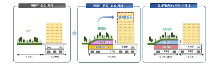 또한, 입체공원을 조성하는 민간 소유 대지에는 지상권 또는 지역권을 설정해 지속성을 담보할 예정이다.