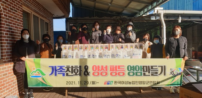 [세계로컬타임즈 강석운 기자] 한국여성농업인영암군연합회는 지난 29일 가족친화 환경 조성 및 양성평등 의식 확산을 위해 영암군양성평등기금 공모사업으로 선정된 가족친화&양성평등 영암만들기사업을 실시했다고 밝혔다.