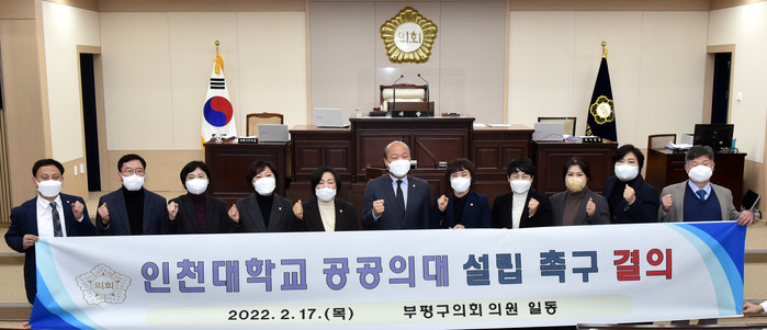 [세계로컬타임즈 한창세 기자] 부평구의회(의장 홍순옥)는 지난 17일 제248회 임시회 제2차 본회의에서 전체의원이 공동 발의한 ‘인천대학교 공공의대 설립 촉구 결의안’을 만장일치로 채택했다.