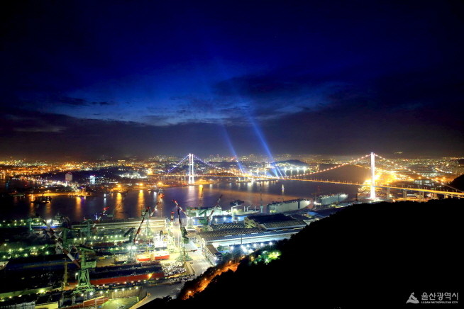 | ▲ 울산대교가 환하게 불을 밝힌 야경.<사진제공=울산시청> |