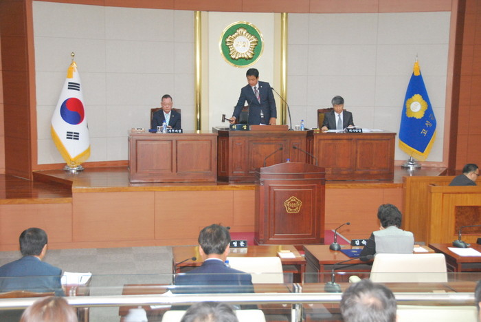 | ▲ 강원도 고성군의회가 지난 11일 본회의장에서 임시회를 개회하고 있는 모습.<사진제공=고성군의회> |