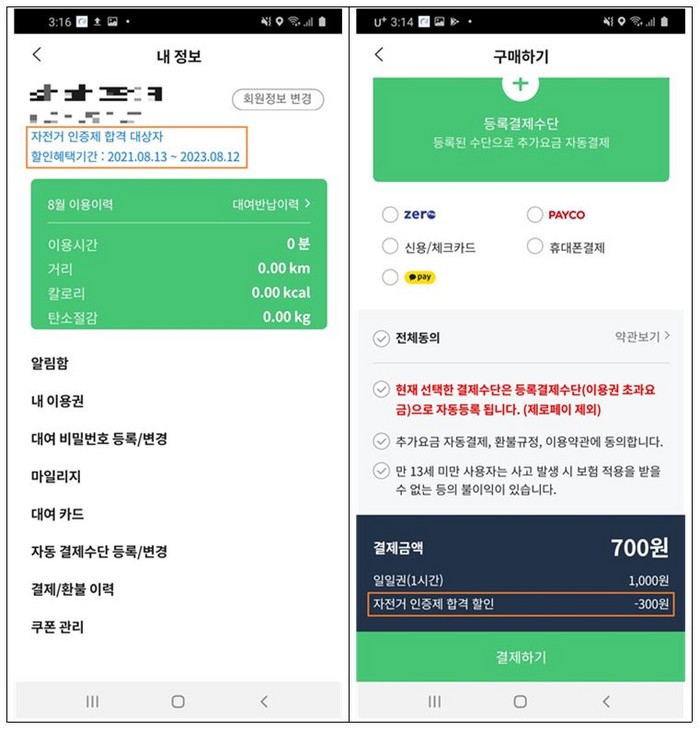 인증 유효기간 및 요금감면 기간은 인증일로부터 2년으로, 합격자는 따릉이앱 회원가입 후 앱에서 일일권 또는 정기권 구매 시 자동적으로 할인 적용된다.