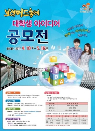 11일 보령시에 따르면 공모전 주제는 보령머드축제 콘텐츠와 공격적 마케팅 개발방안으로 도입이 가능한 체험, 공연, 전시 등 축제관련 프로그램과 국내외 효과적 홍보방안과 이슈화 등 차별화되고 독창성 있는 아이템이면 가능하다.