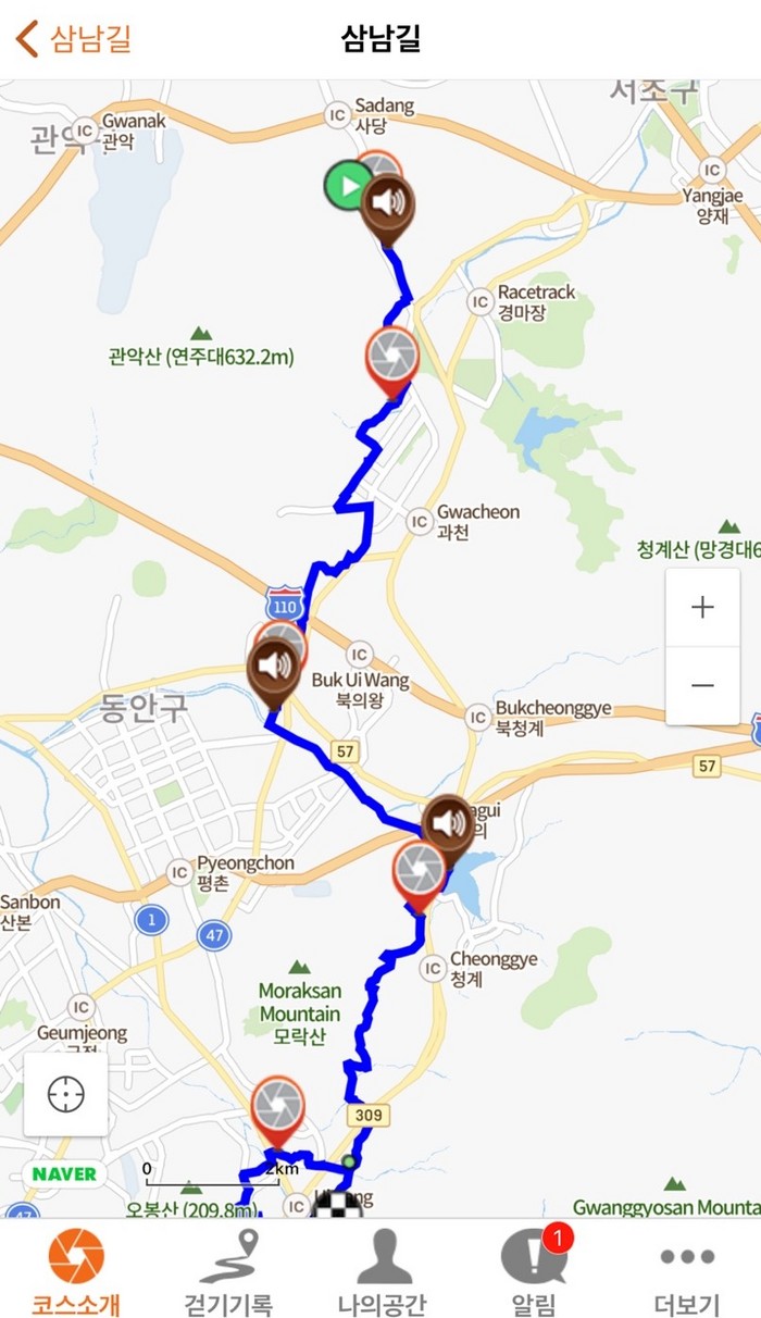 주요 지점이나 문화유산 근처에 도착하면 자동으로 알림이 뜨고 음성 해설을 들을 수 있다.