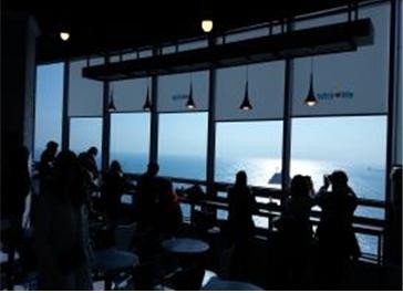 아찔한 절벽을 발아래 두고, 탁 트인 전망을 마주하게 디자인된 태종대 전망대의 실내디자인은 관광객들의 호기심을 자극하기에 충분했다.