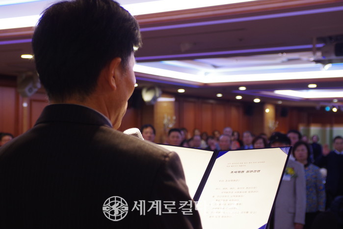 9일 약 200여명의 조사위원들이 참가한 가운데 서울 세종호텔에서 최승묵 세계일보 조사국장의 사회로 진행된 이날 행사는 김중석 세계일보 서울시 상임위원회 사무총장의 '조사위원 실천강령' 제창으로 시작했다.