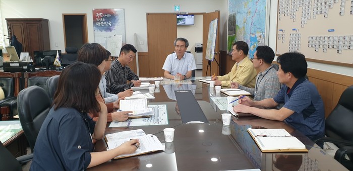 | ▲ 인천 계양구청 관계자들이 아프리카돼지열병 선제적 예방과 관련해 회의를 진행하고 있다.(사진=계양구청 제공) |