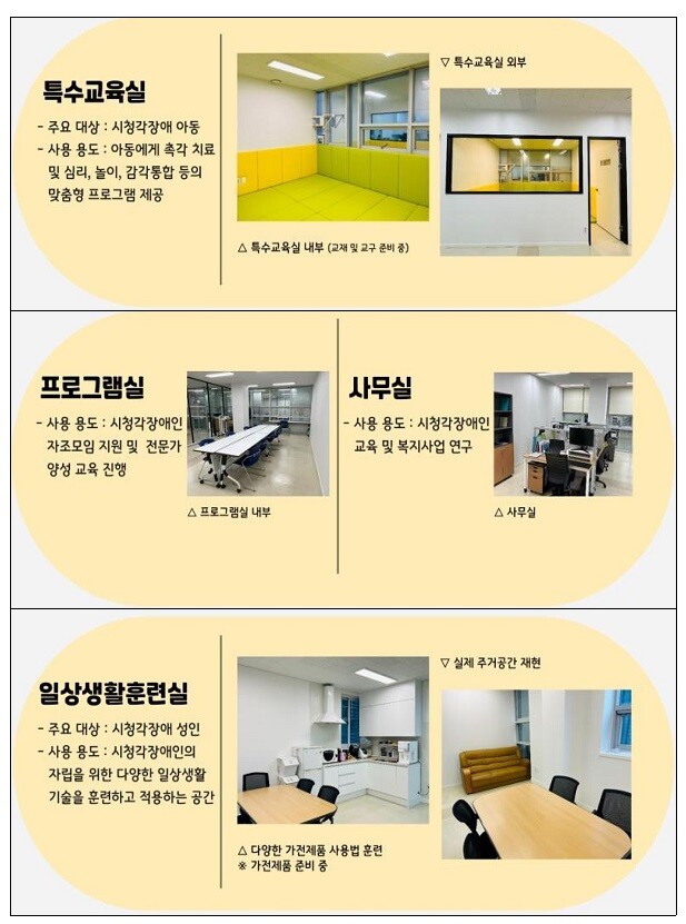 ‘시청각장애인 학습지원센터’는 시각과 청각 기능을 동시에 상실해 의사소통에 어려움을 겪고, 사회에서 고립되기 쉬운 시청각장애인(일명, 헬렌켈러)에게 개별화된 의사소통 교육, 정보격차 해소 등 사회참여를 위한 맞춤형 서비스를 제공하는 곳으로 헬렌켈러의 스승 설리번과 같은 역할을 한다.