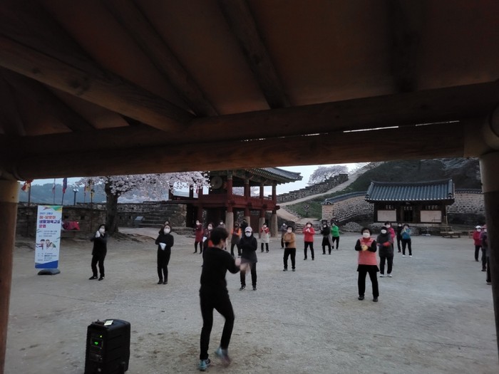 | ▲ 고창읍성에서 지역주민들이 생활체조를 하는 모습(사진=고창군) |