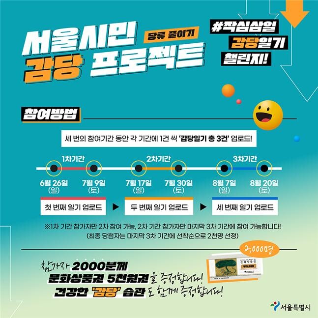 이번 챌린지는 생활 속 당류 저감 실천을 통해 건강한 식습관을 정착할 수 있도록 기획한 ‘서울시민 감당(당류 줄이기) 프로젝트’ 일환으로 진행한다.