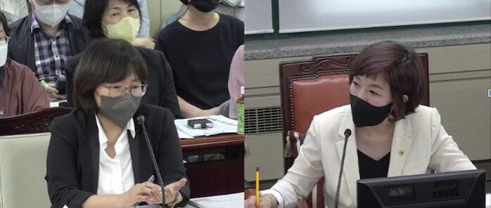 | ▲ 김경 의원(사진 오른쪽)이 시민건강국장에게 질의를 하고 있다. (사진=의원실) |