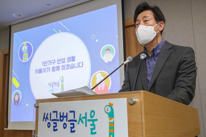 | ▲ 오세훈 서울시장이 지난달 18일 서울시청에서 '서울시 1인가구 안심 종합계획'을 발표하고 있다. (사진=뉴시스) |