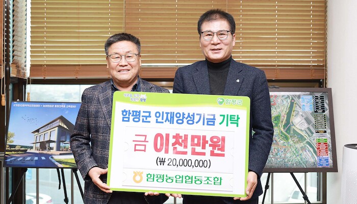 5일 군에 따르면 지난 3일 ▲함평농업협동조합에서 2천만원 ▲해울림영농조합법인 장필종 대표가 2백만원을 함평군 인재양성기금에 기탁했다.
