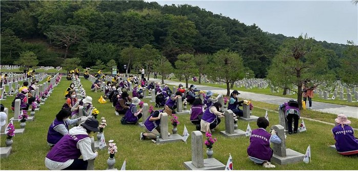 [세계로컬타임즈 온라인뉴스팀] (사)세계평화여성연합은 6월 호국보훈의 달을 맞아 순국선열과 호국영령의 숭고한 희생정신을 기리기 위해 서울시 동작구 동작동 국립서울현충원에서 200여 명의 회원이 참석한 가운데 지난 17일 묘역정화 봉사활동을 펼쳤다.