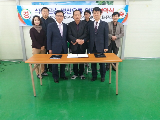 | ▲ 예천군곤충유통사업단이 농림부 공모사업에 선정돼 2년간 국비를 지원받는다. 사진은 식품곤충 생산유통 업무협약식 모습.<사진제공=예천군청> |