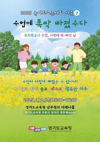 올해로 일곱 번째를 맞는 ‘놀이토크 콘서트’는 2019년부터 운영해 온 도교육청 유아교육 분야의 대표 행사다. 놀이중심 교육과정 실천에 힘쓰는 도내 유치원 교원의 고민과 시사점을 공유하고 함께 소통하는 장으로서 자리매김해 왔다.