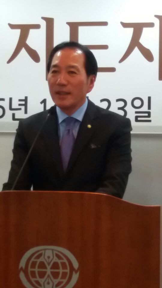 | ▲ 박귀종 세계일보 조사위원 중앙위원회 의장이 23일 오후 제4기 통일지도자 아카데미 수료식에서 격려사를 하고 있다. |