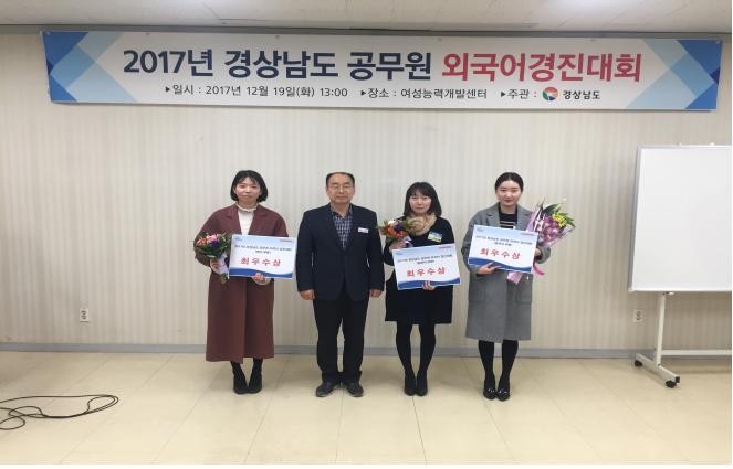 일본어 부문 최우수상에는 ‘어떤 마을 이야기’란 주제를 발표한 거창군 이소예 주무관, 우수상은 창원시 박상봉 주무관, 장려상은 함안군 송미란 주무관이 받았다.