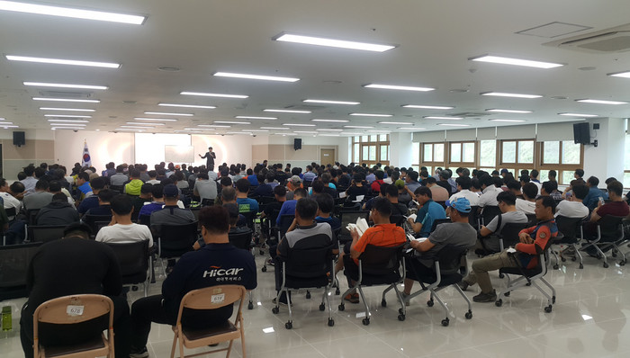 | ▲ 안동시수산물도매시장 대회의실에서 교육을 진행하고 있는 모습. 안동시수산물도매시장이 회의실을 무료로 개방해 넓은 주차장을 이용할 수 있어 이용자들로부터 호응을 얻고 있다.<사진제공=안동시청> |
