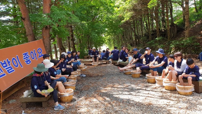 | ▲‘바우 스토리 마당’ 행사 참가자들은 맨발걷기 후에 한방 족욕을 즐길 수 있다. (사진=평창농촌관광협의회 제공) |
