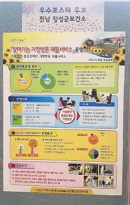 전남에서는 유일하게 장성군이 '찾아가는 가정방문 재활서비스 운영'을 소개한 포스터로 우수상을 수상하는 영예를 안았다.
