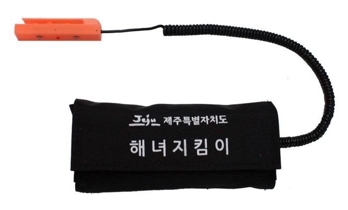 20일 서귀포시에 따르면 해녀안전지킴이란 해녀들이 몸에 착용해 물질조업 중 물속에서 2분이 경과해도 물 밖으로 나오지 않을 경우 해녀 머리에 착용된 센서의 작동에 의해 자동으로 수면 위에 부이를 띄워 사고자의 위치를 표시하는 장치다.