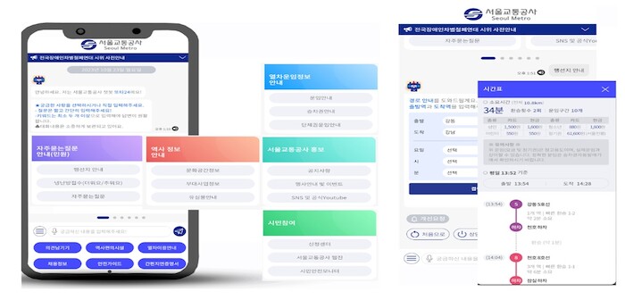 시민들은 챗봇을 통해 행선지 안내 기능을 이용해 경로 및 소요 시간, 요금 등을 바로 확인할 수 있으며, 지하철 노선, 시간표, 역사 정보, 담당 부서 정보 등을 쉽게 얻을 수 있다. 또한 교통약자를 위한 STT(Speech to Text), TTS(Text to Speech) 등 음성지원기능도 제공된다.