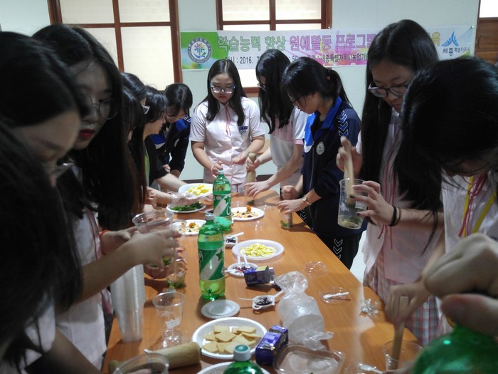 7일 세종 농업기술센터에 따르면 이번 수업은 농촌진흥청과 함께 학습능력향상을 위한 원예활동 프로그램의 일환으로 학생들이 4월에 심었던 허브식물을 이용해 ‘상큼톡톡 모히또’와 ‘꽃 카나페’를 만들어 큰 호응을 얻었다.