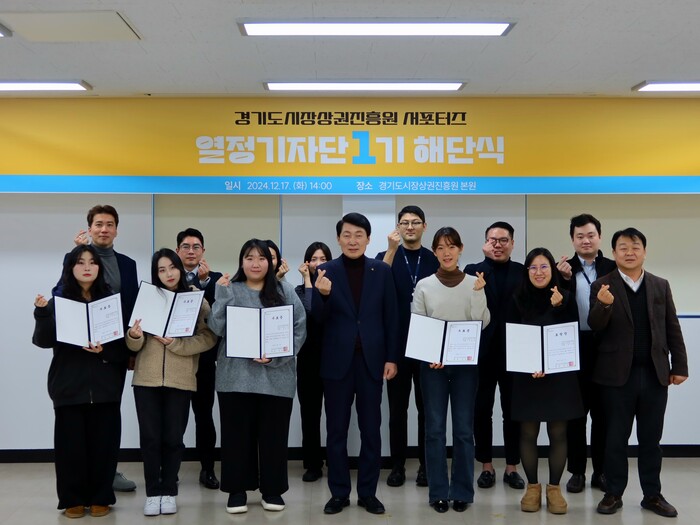 [세계로컬타임즈] 경기도시장상권진흥원의 정책 및 지원사업과 도내 지역상권을 홍보하기 위해 활동한 경상원 서포터즈 '열정기자단 1기'가 17일 오후 본원 대교육장에서 해단식을 끝으로 활동을 마무리했다고 밝혔다.