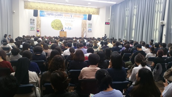 이후 제주YWCA 통합 상담소 강미라 소장의 '현장에서 일어나는 아동학대예방 교육'이라는 주제로 사례중심의 교육을 진행했다.