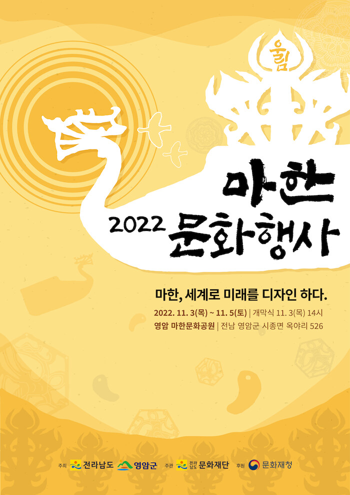 [세계로컬타임즈 강석운 기자] 동아시아 고대해상왕국 마한을 바탕으로 2022 마한문화행사가 전라남도와 영암군의 공동주관으로 11월 3일부터 5일까지 3일 동안 영암 시종 마한문화공원 일원에서 개최된다.