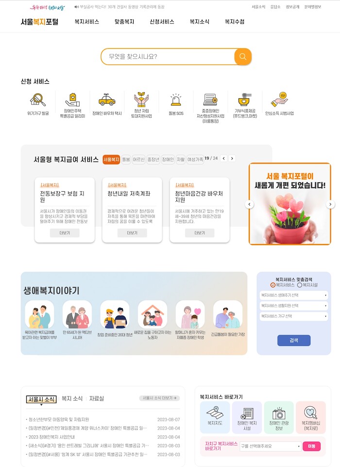 [세계로컬타임즈 이효진 기자] 서울시가 정보 제공 위주로 운영되던 서울복지포털을 개편해 온라인 복지급여 신청항목을 확대하고 보다 쉽게 복지서비스를 검색할 수 있게 하는 등 시민의 이용 편리성을 높였다.